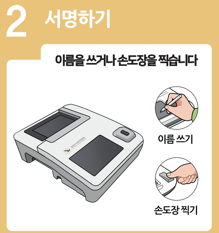 2. 본인 확인: 제시한 신분증으로 본인 확인을 받습니다.