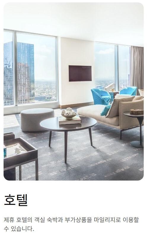 - 호텔, 레스토랑 이용 시 2배 마일리지 적립