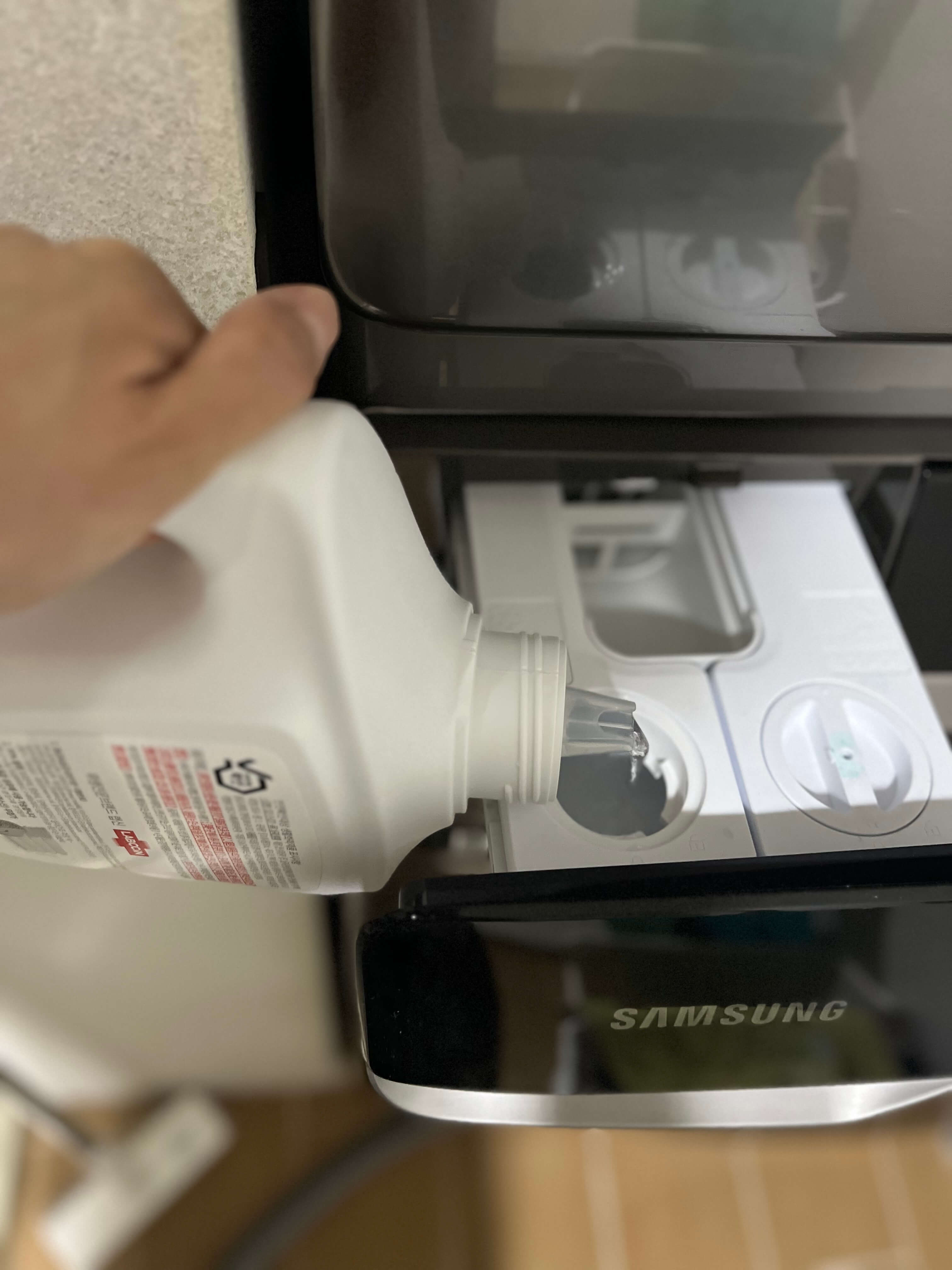 둘째, 세탁기의 섬유유연제 투입구에 미리 넉넉한 양을 부어두는 방법입니다.