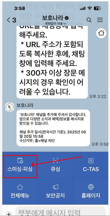 보호나라 카카오톡 채널로 스미싱 확인하는 방법