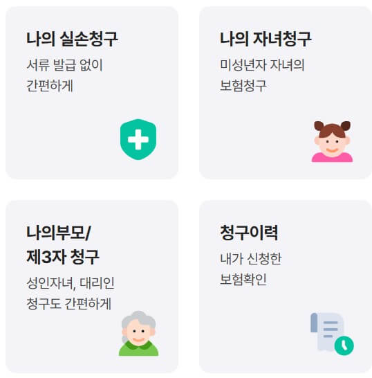 실손24는 본인 외에도 자녀나 부모님을 위한 청구도 가능합니다.