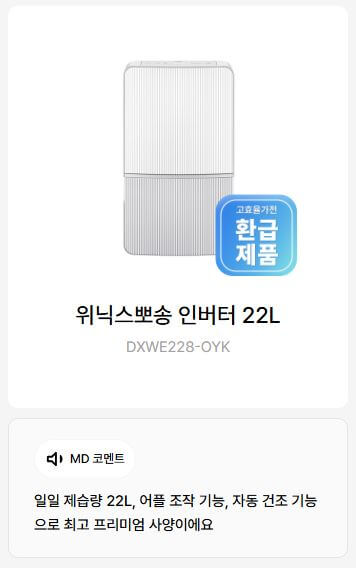 - 인기 모델 참고: 원룸은 8~10L, 소형 아파트는 16~19L, 중대형 아파트는 20L 이상 모델을 고려해 보세요.