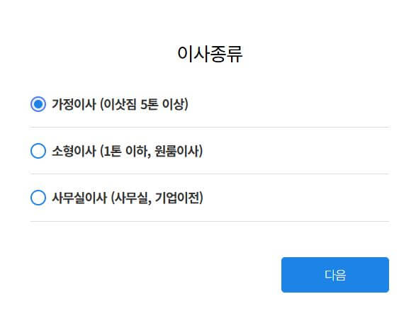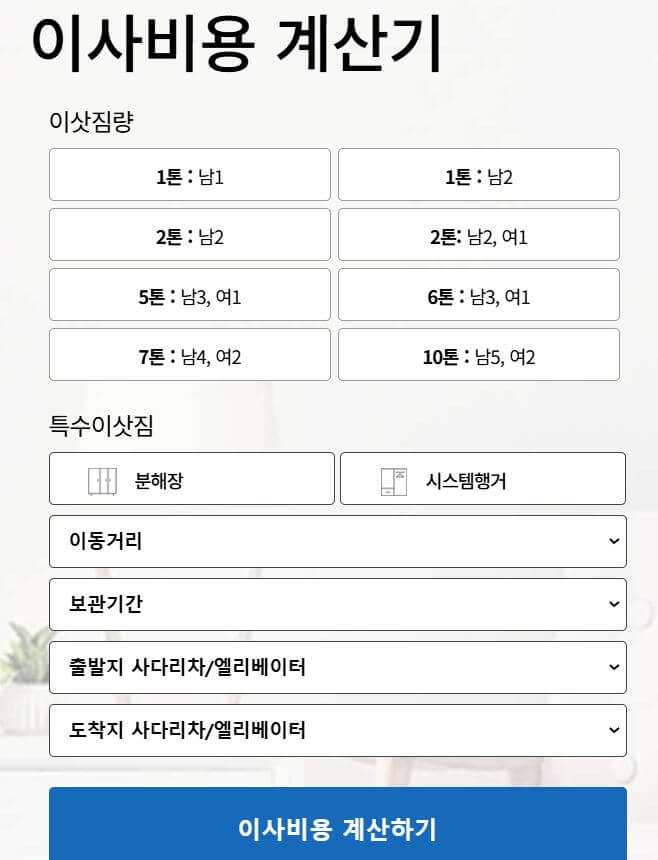 이사 스토리 비용 계산기 사용법
