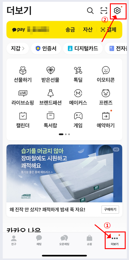 💠 PC버전 카카오톡 설정 메뉴 접근
