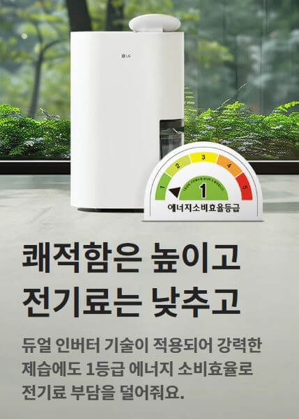 1. 에너지 소비 효율 등급 확인: 제습기는 여름철 자주 사용하게 되므로, 에너지 효율 등급이 중요합니다. 1등급 제품을 선택하면 장기적으로 전기요금 절약에 큰 도움이 됩니다. LG 휘센 제습기는 대부분 1등급으로, 제습 효율이 높아 안심하고 사용할 수 있습니다.